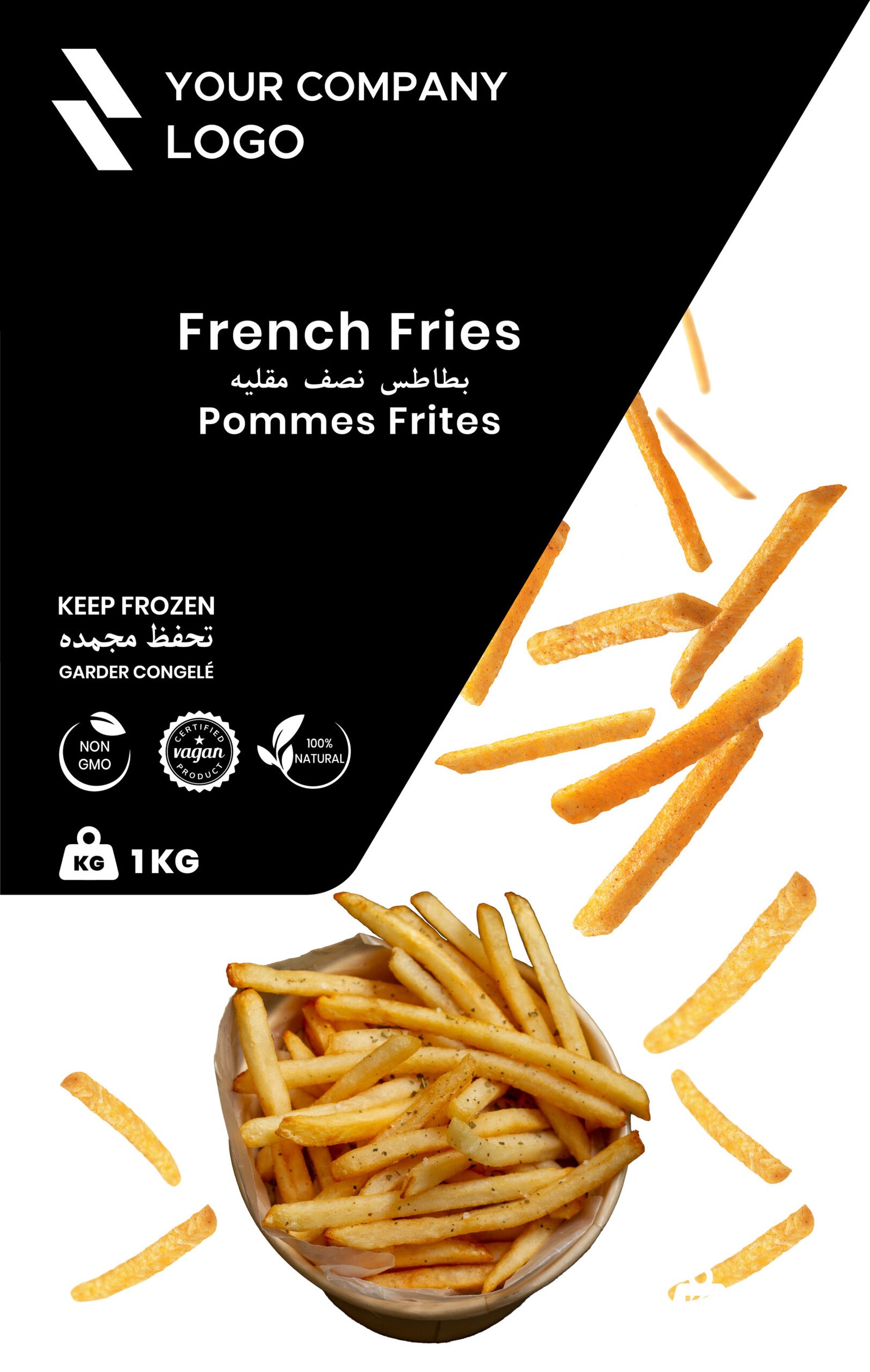 Get a custom French fries zip bag label design to enhance your food brand’s visibility. Attractive, vibrant, and print-ready for premium packaging.